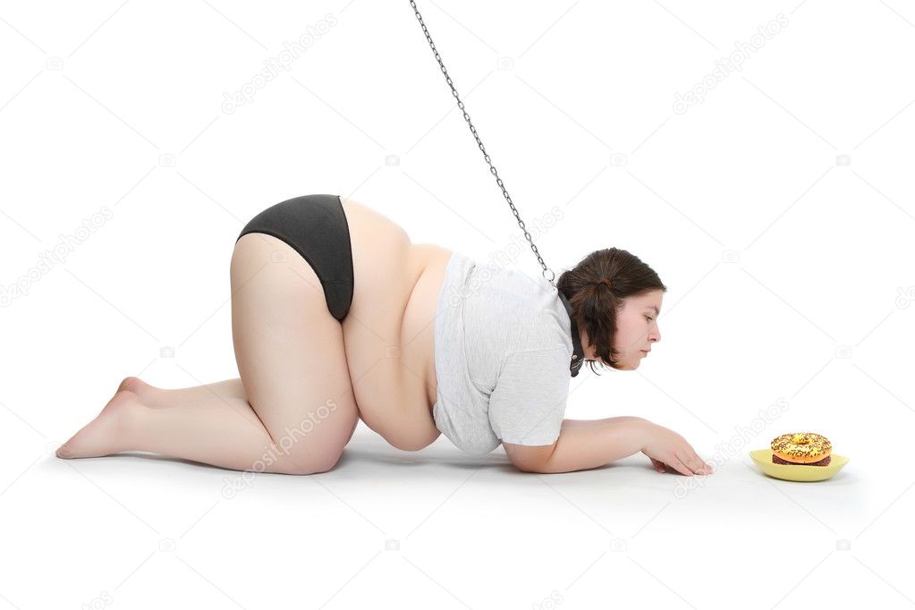 Scarica Gratis Funny Picture Of An Hungry Obese Woman Chained Near Plate With