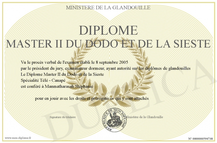 Téléchargement gratuit Diplome Master Ii Du Dodo Et De La Sieste