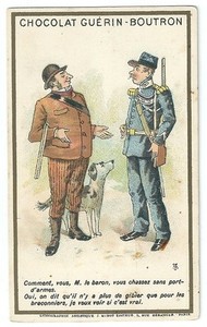 Téléchargement gratuit Chromo Guerin Boutron J Minot Humour Garde Chasse Chasseur Chien